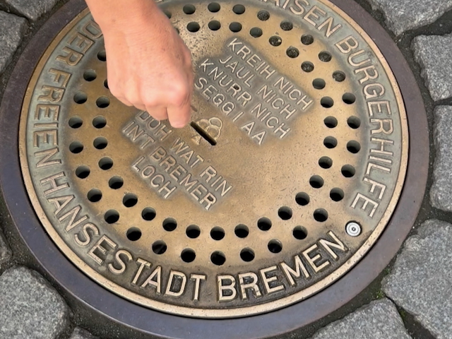 マルクト広場の片隅に、ひっそりと置かれた「ブレーメンの貯金箱」と呼ばれるマンホールの蓋がある。