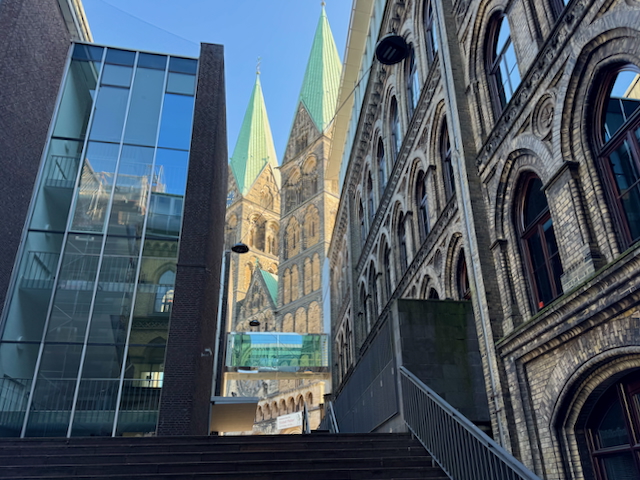 市庁舎の隣にそびえる聖ペトリ大聖堂は、ブレーメンの象徴ともいえる存在。