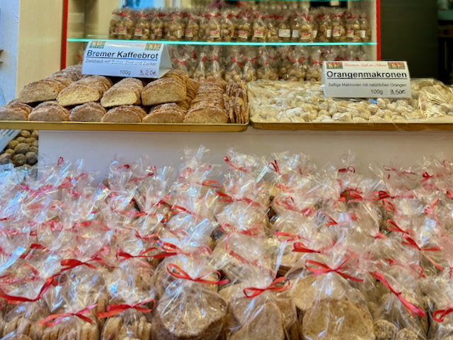 シュノーア地区にあるKonditorei Cafe」では、伝統菓子とオリジナルのお菓子が充実。ハンザ都市として栄え港湾貿易が盛んだったブレーメンでは、当時貴重な砂糖や小麦といった材料が手に入りやすかったことから、郷土色豊かなお菓子がたくさん生まれ今に受け継がれている。シュトレンのようなブレーマー・クラーベンや、シナモン風味のサクサク菓子「ブレーマー・カフェブロート」などお土産にもぴったり。