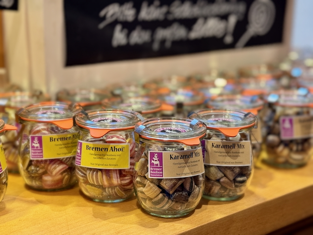 ベトヒャー通り界隈で人気のキャンディショプ「Bremer Bonbon Manufaktur」。工房ではガラス越しに飴づくりの見学できて、作りたてのキャンディを試食できる!カラフルで多種にわたるフレーバーはお土産にぴったり。きっと好みの味が見つかるはず。覗いてみる価値ありのショップ。
