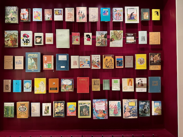ユネスコ「世界の記憶」に登録された童話集の初版本や、手紙・原稿など貴重な資料が並ぶ。
