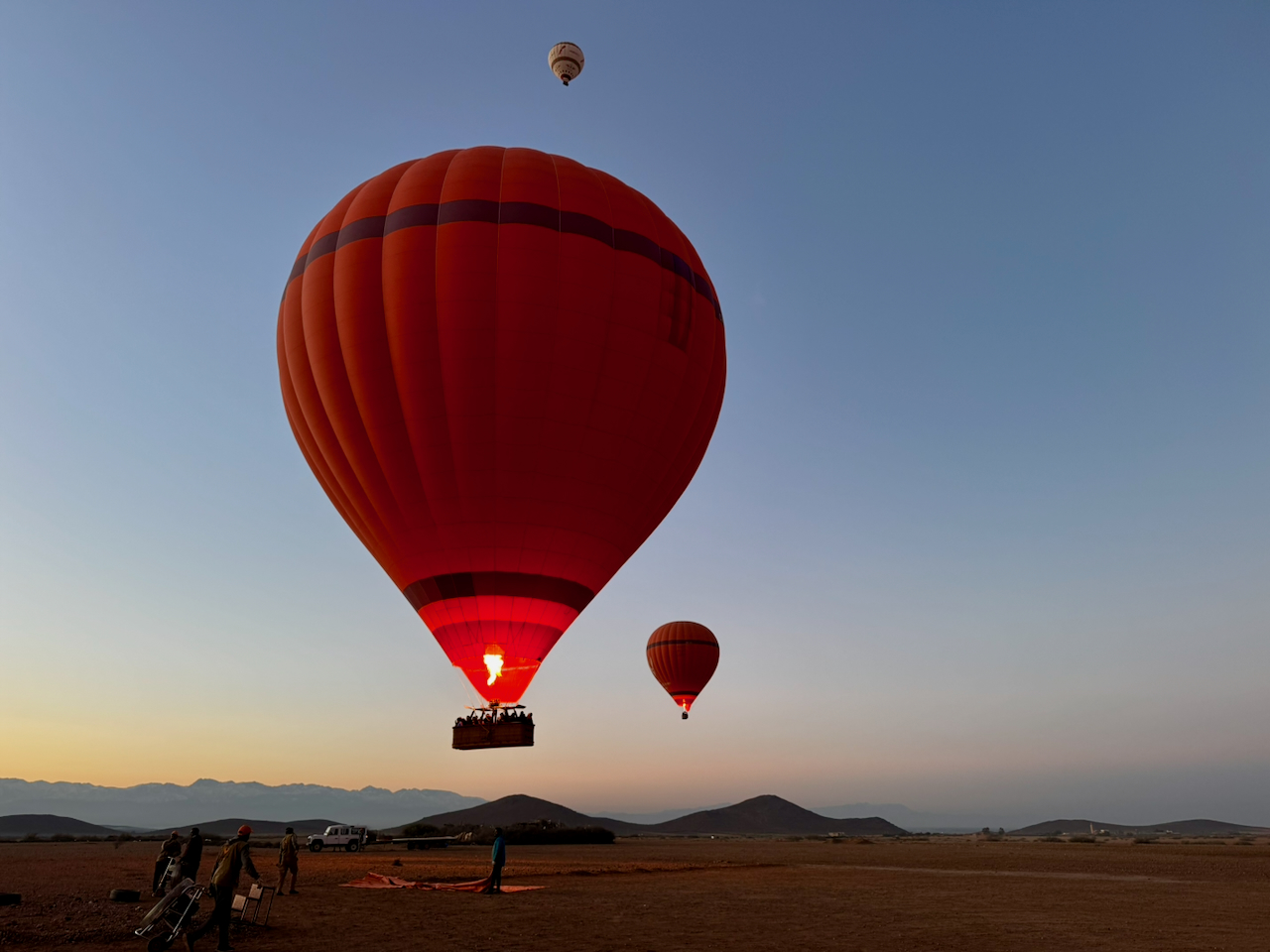 モロッコ中央部に位置するエキゾチックな古都マラケシュ。中世の混沌と現代の洗練が混ざり合ったエネルギッシュな街。そこで期待以上だった体験がマラケシュ郊外で開催される気球ツアー。赤土が広がる大地、アトラス山脈から昇る朝日の輝きは泣けるほど感動。